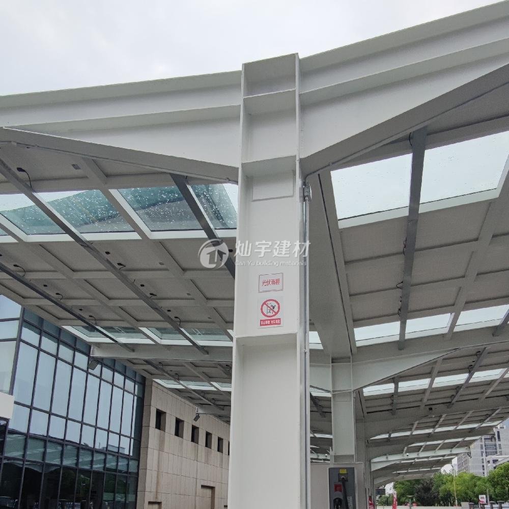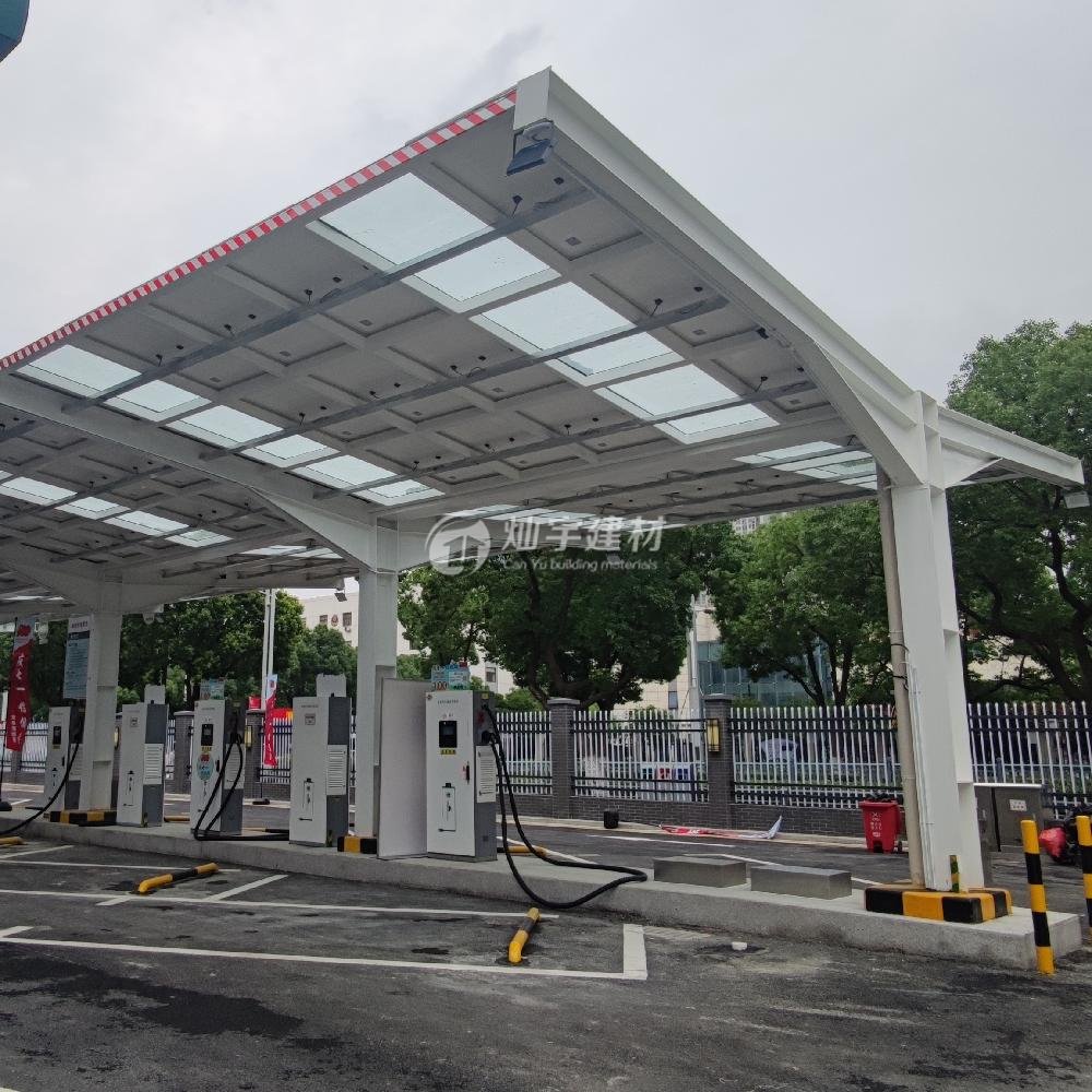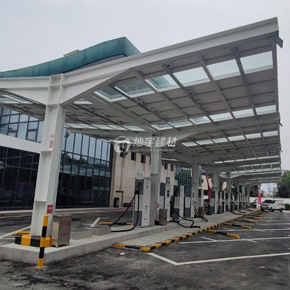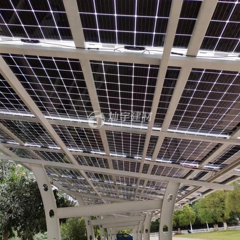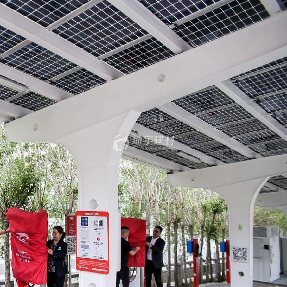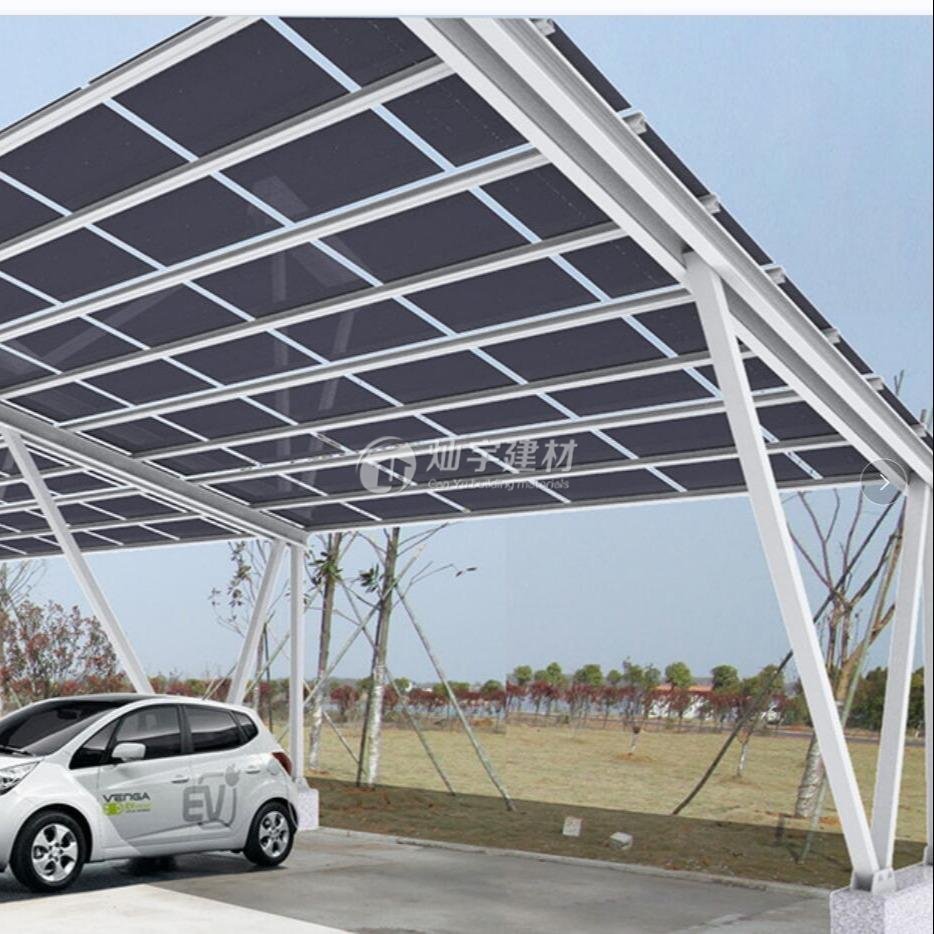 蘇州燦宇新型太陽能光伏車棚,助力碳達峰碳減排,隨著新能源充電汽車的普及,對于充電需要越來越緊迫用電量也極具增加,蘇州燦宇新型建材車棚事業部為了滿足市場需要隆重推出太陽能光伏車棚產品,該系列產品可以跟下面的充電樁產品配套使用,多余的電可以和國家電網并網也可以儲能,一舉多得減少溫室氣體的排放也為企業帶來社會價值,燦宇太陽能光伏車棚頂面采用多晶硅面板或者發電透光玻璃兩種光伏材料選擇,框架采用鋼架或者不銹鋼鋁合金框架,造型大小可以按照客戶需要定制。